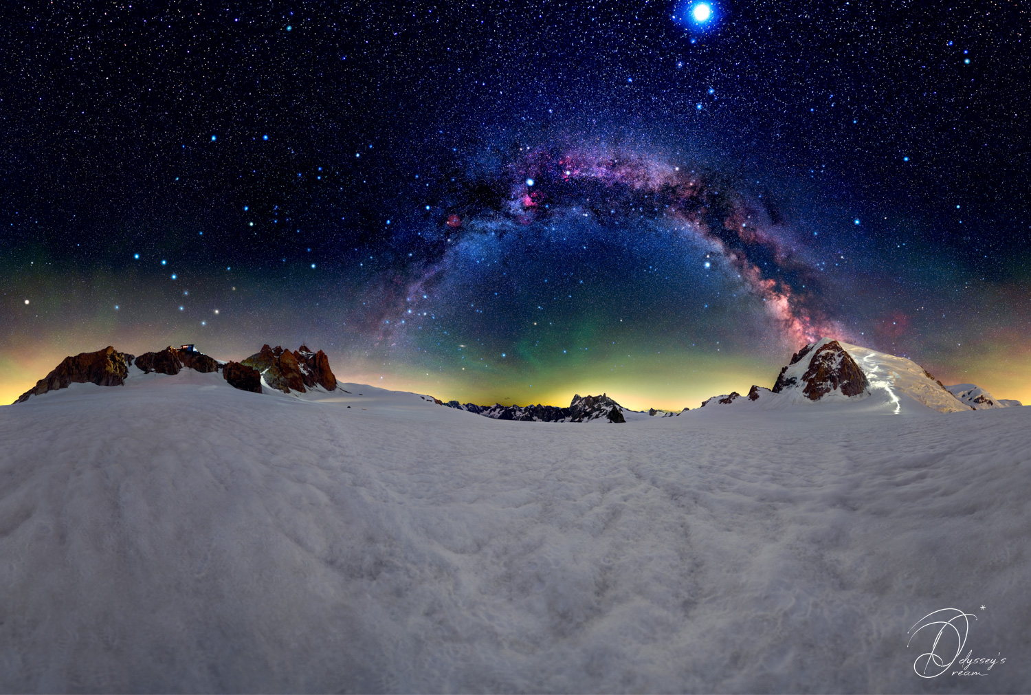 Arc de la Voie Lactée embrassant tout l’ensemble de la Vallée Blanche