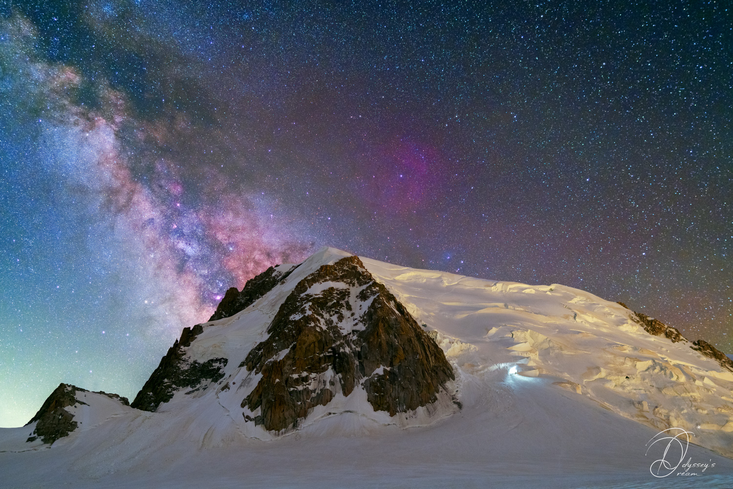 Voie Lactée et la Nébuleuse de Zeta Ophiuchi au dessus de Mont Blanc du Tacul (4248m)