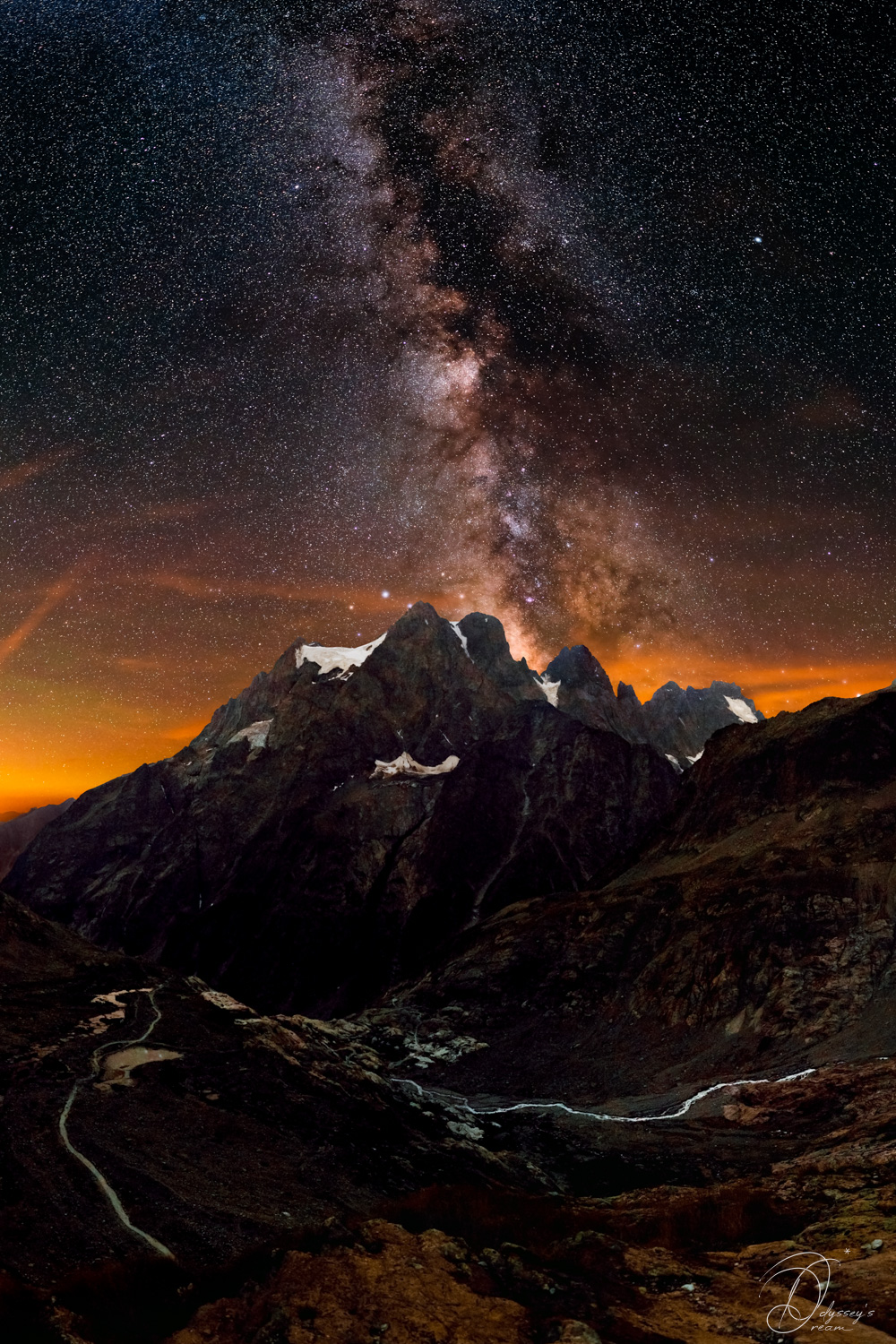 Pour moi, cette image représente une rencontre insolite : celle d’une rivière, d’un chemin et de la Voie Lactée qui se réunissent pour discuter derrière la montagne.