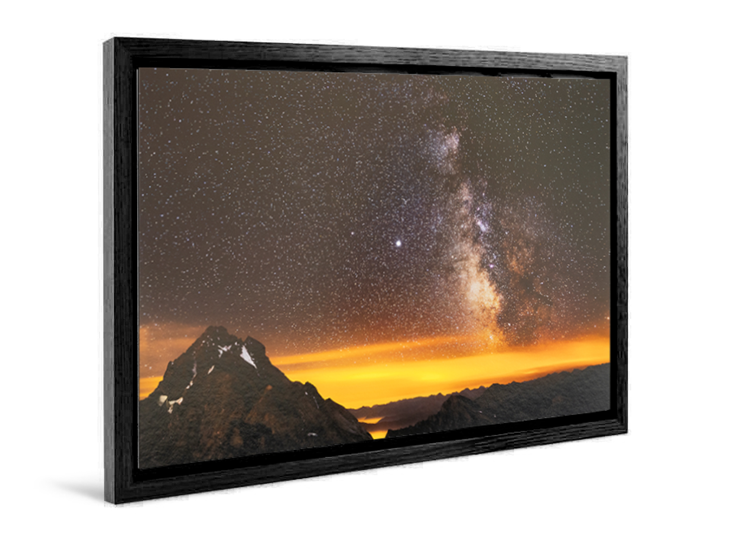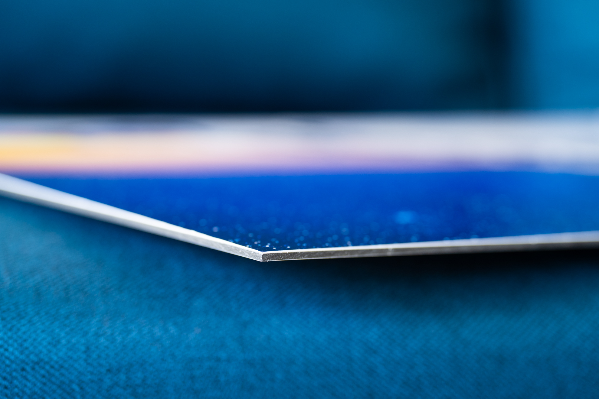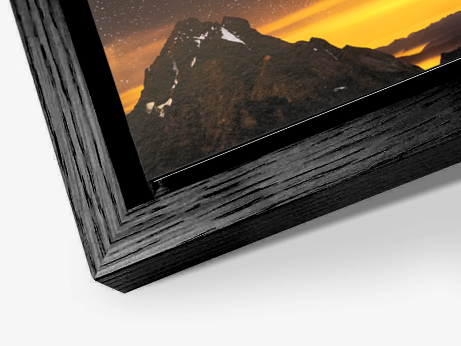 Ici, le contrecollé Alu-Dibond est encastré dans un châssis qui, une fois positionné, donne l'impression que l'œuvre flotte dans un cadre sans verre.